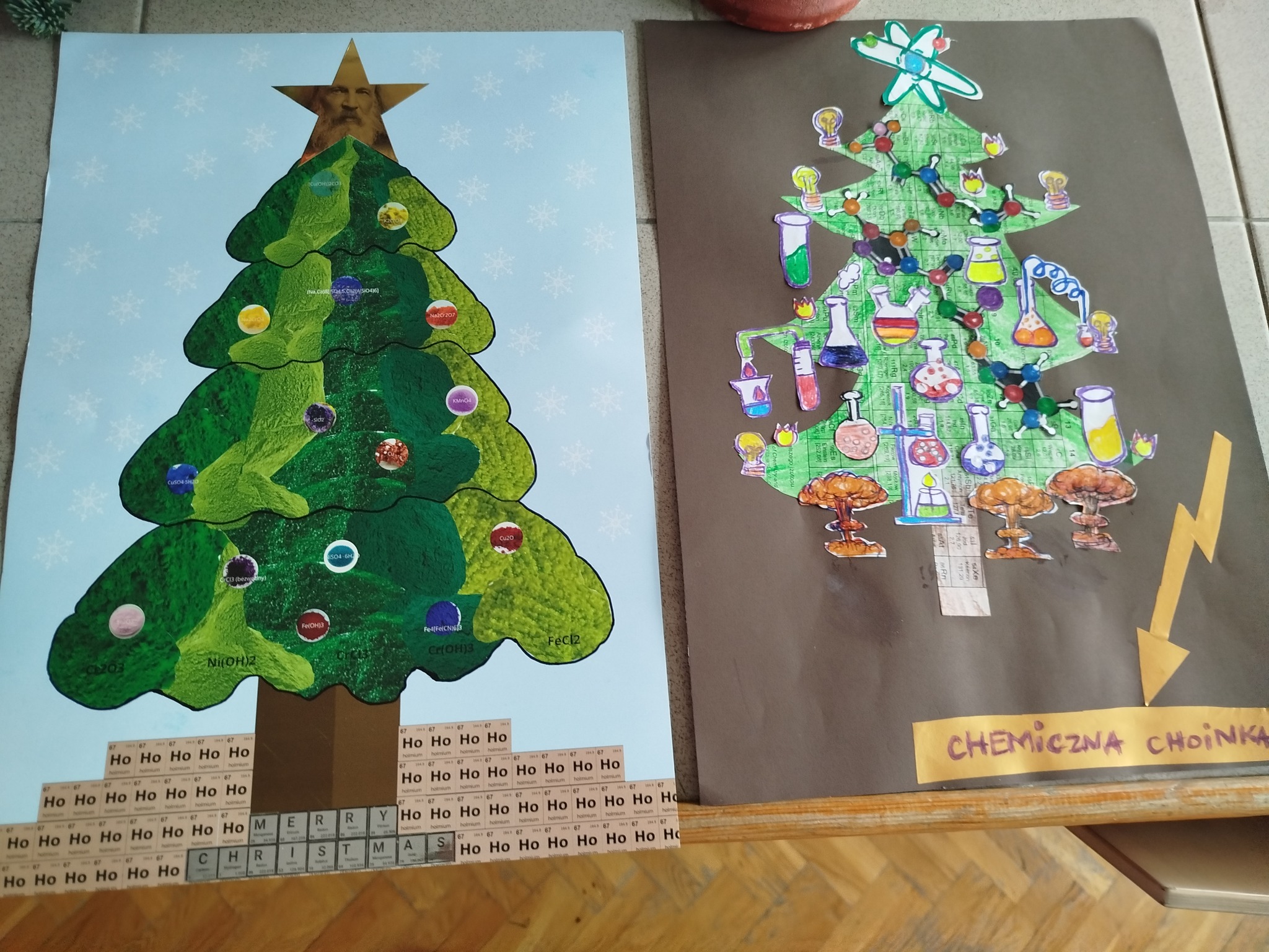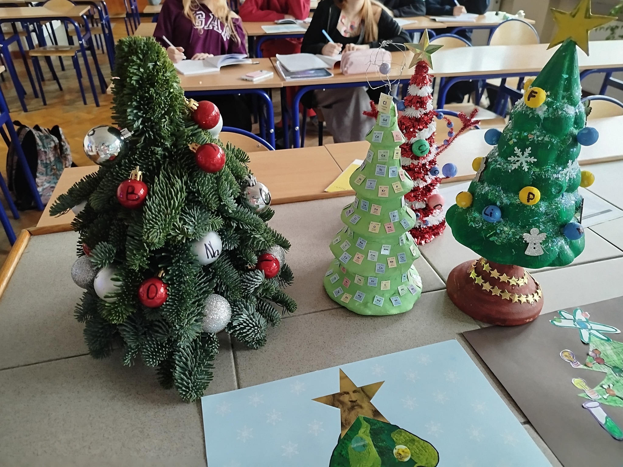 i nasi uczniowie też ślą życzenia z chemicznych choinek rozmieszczonych po całej szkole