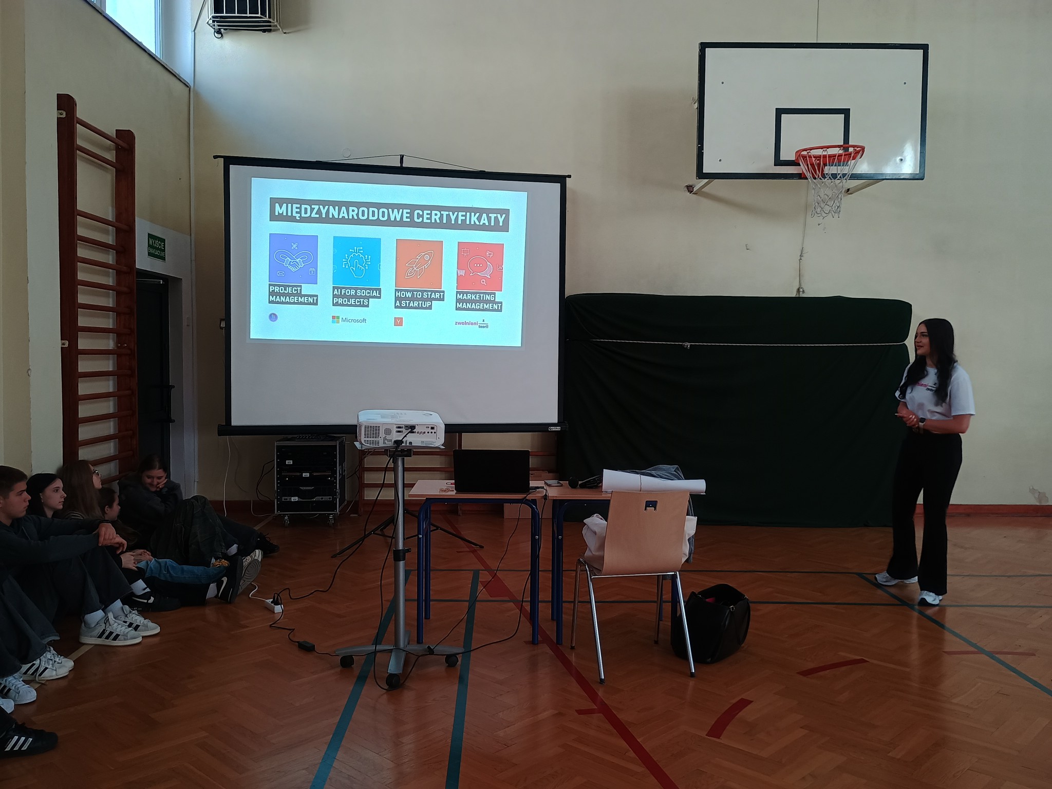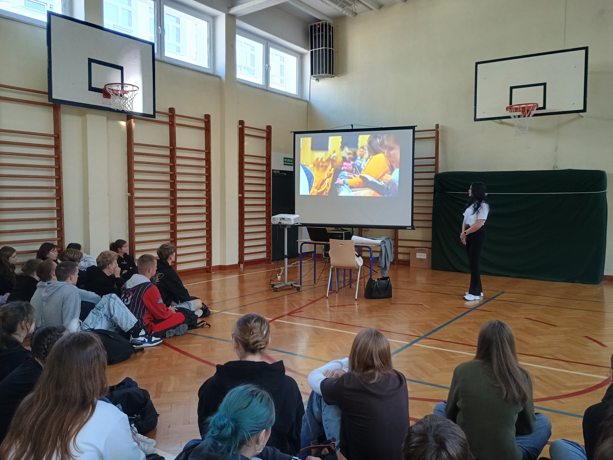 Mieliśmy dziś okazję i przyjemność gościć Ambasadorkę Olimpiady Zwolnieni z Teorii, która przybliżyła uczniom ideę tego ogólnopolskiego konkursu oraz opowiedziała o swoich doświadczeniach związanych z realizacją projektów społecznych.